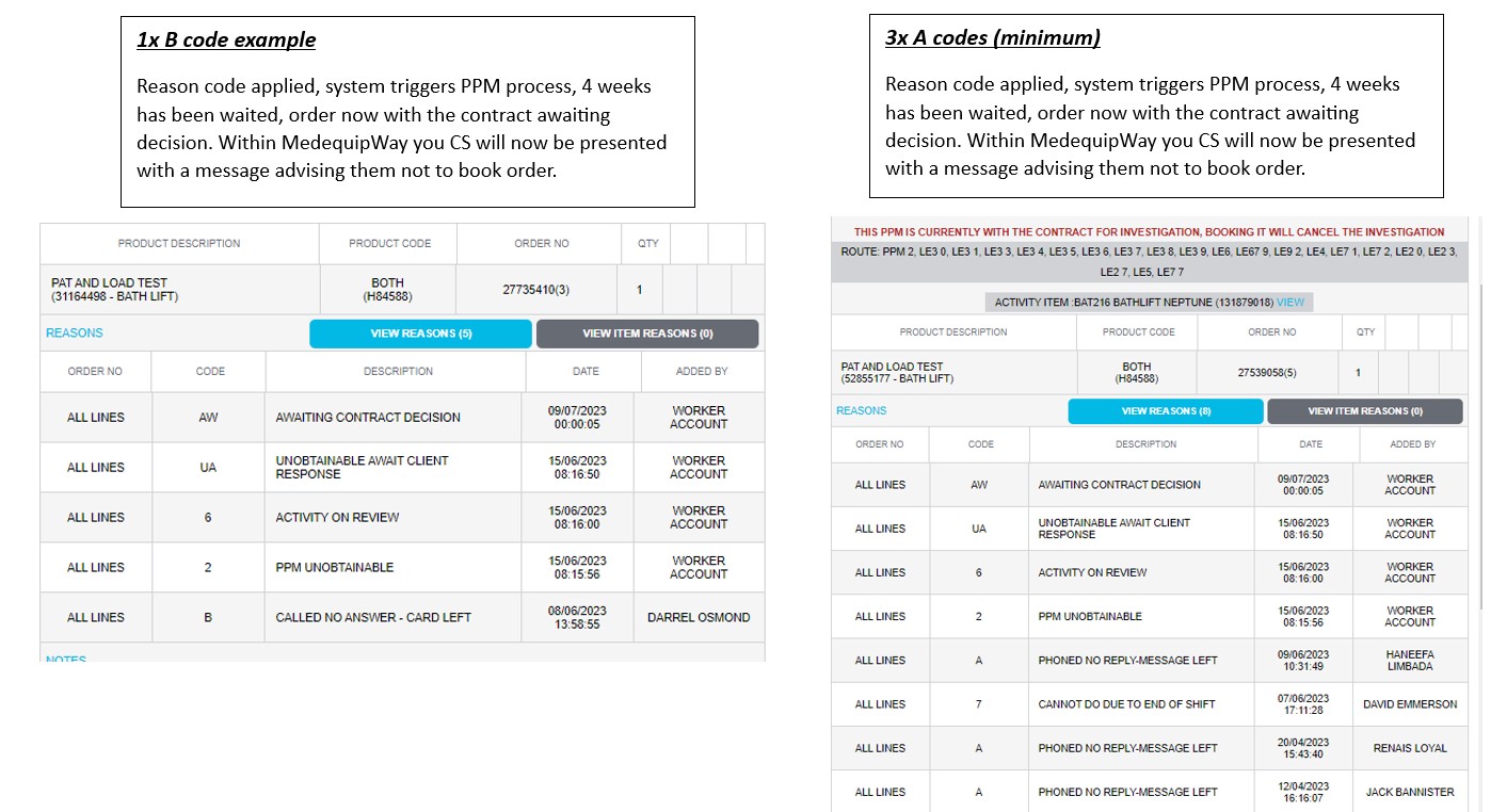 This PPM will then need to be attempted again following the same chain of events as before IE minimum 3x A codes 1x B code. But no second letter will be sent. If after a further 3 reason codes have been applied to the order and we are still not able to gain contact with the service user. This will again be returned to the contract.